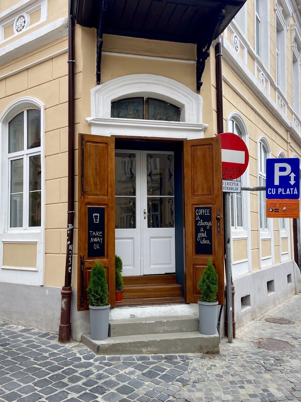 acum un anFoarte buna cafeaua si corect facuta. Baiatul care ne-a servit a fost prietenos si un barista foarte bun. De data aceasta am servit cafeaua in local si am primit cesti colorate (facute manual?) - ca in poza Plusuri: Cafea foarte buna, local frumos, preturi mai bune decat in zona foarte turistica de langa Piata Sfatului. Minusuri: Daca este aglomerat, se poate astepta putin mai mult cred, doar o persoana lucra la servire, preparare bauturi etc.