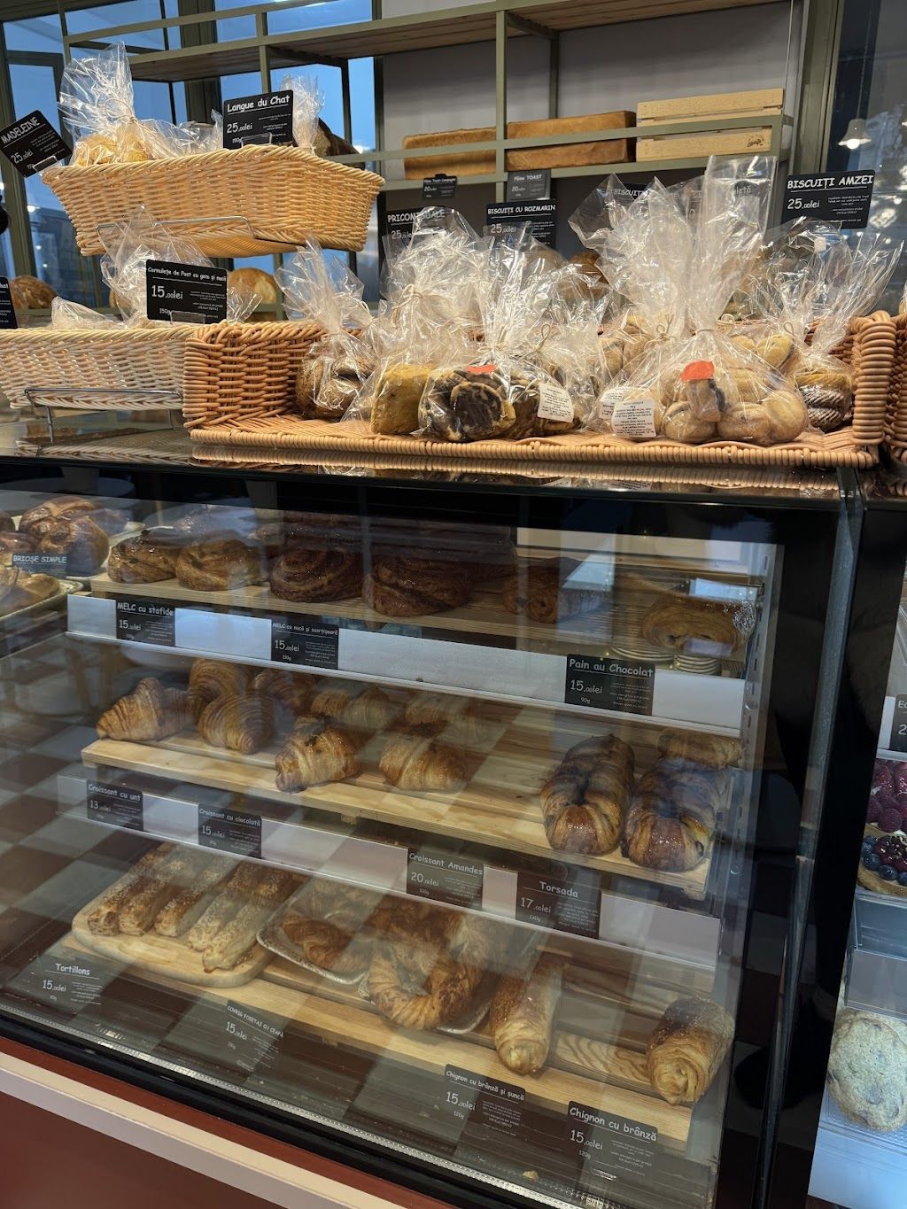 Produsele arata foarte bine si sunt delicioase. In interior miroase ca in brutariile din Franta. Singurul minus ar fi ca si preturile sunt aliniate la cele din Franta 😅.