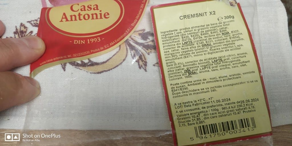 acum 6 luniAm cumpărat 2 cremsnit la pachet. Nu este prima data,dar acum m am hotărât sa le verific. Verificând am descoperit ca au 17 aditivi. Am făcut plângere la protecția consumatorului și am primit răspuns sa i acționez în instanta. Asta cred ca v a urma. Cu răspunsul pe care îl voi avea din instanta, mi s a spus sa fac copie și sa l trimit la protecția consumatorului sa le închidă unitatea. 17 aditivi la un produs este "moarte sigura" dacă consumi des acest produs. Dar, bineînțeles ca cei care produc cremsnitul au și alte produse la vânzare. Niște criminali. Dam și la copii.