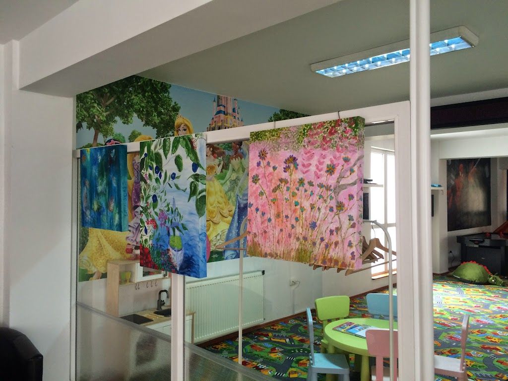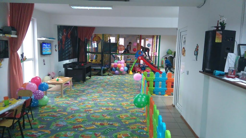 acum un anLocatie perfecta pentru cateva ore de joaca pentru copii.Au jucarii multe,masa de fusbal,console video,loc de joaca,loc pt adulti separat,masinute ,tractorase de plimbat(gen fred și burny),merita sa luati animatoare care intervine la jumatatea timpului si reinvioreaza petrecerea copiilor...e ok. Singurul impediment e faptul ca ur i scarile care sunt cu un grad mai dificil de urcare pt copii,insa nu-l vad ca ceva super naspa.Ce e in afara incintei arata neingrijit,fiind mai multe firme in cladire,dar ceea ce inchiriati si unde petreceti timpul platit,merita,e o experienta de care copii vor fi foarte mulțumiți. AAA,exista o persoana care supravegheaza copii si care are grija sa realinieze jucariile mari pentru siguranța copiilor cand se mai aleargă, împing...