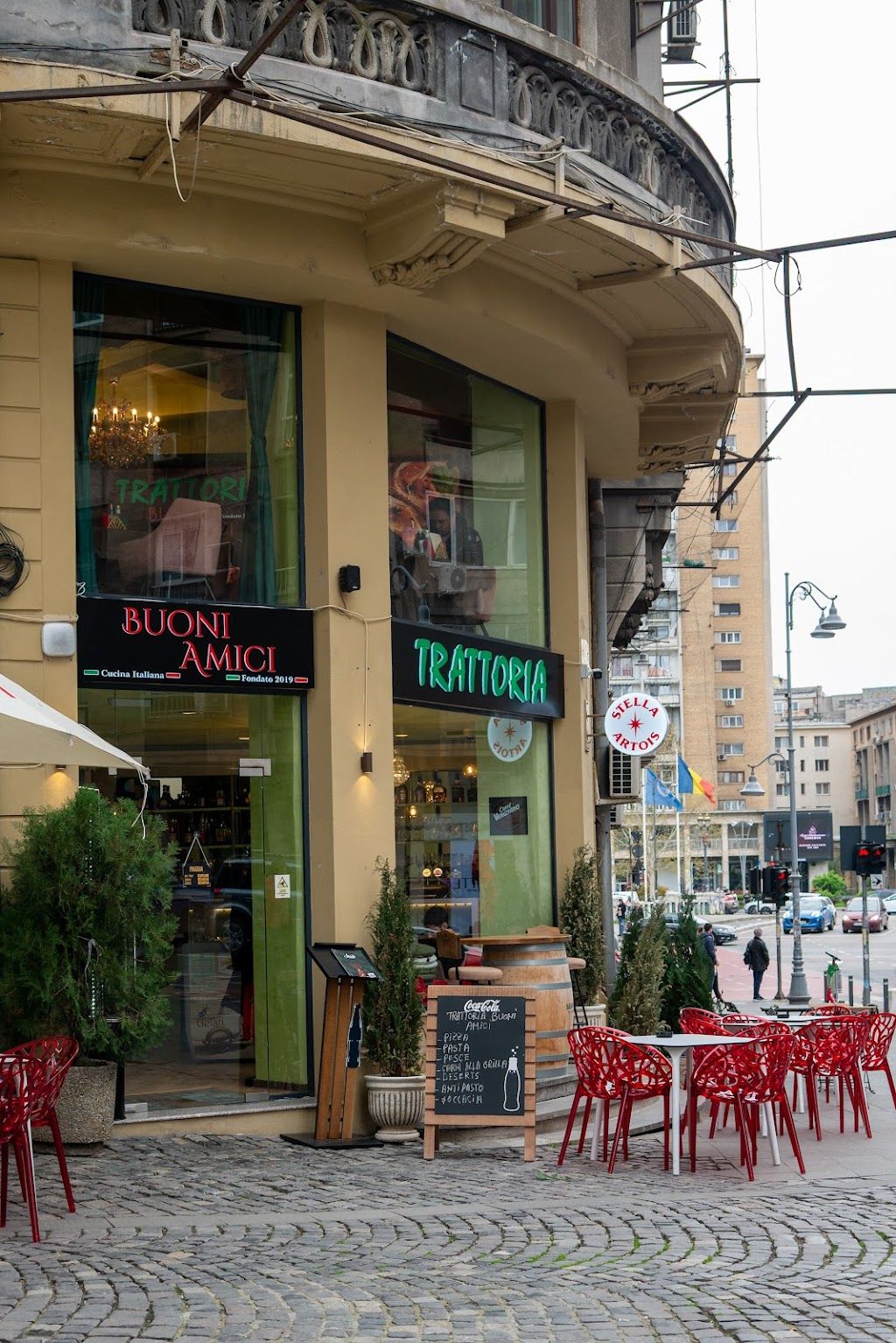 Trattoria Buoni Amici – Victoriei oferă o experiență italiană rafinată în inima București, cu paste și înghețată preparate impecabil. Atmosfera este caldă și intimă, perfectă pentru cine care vrea să savureze mâncare autentică; personalul e mereu amabil și atent, iar preparatele vin rapid. Cocktailurile cu fructul pasiunii și servirea primitoare fac din acest restaurant o adresă de referință pe Calea Victoriei. Locul este apreciat de peste 90 de clienți, recomandat pentru cine vrea o cină relaxantă sau o întâlnire specială.